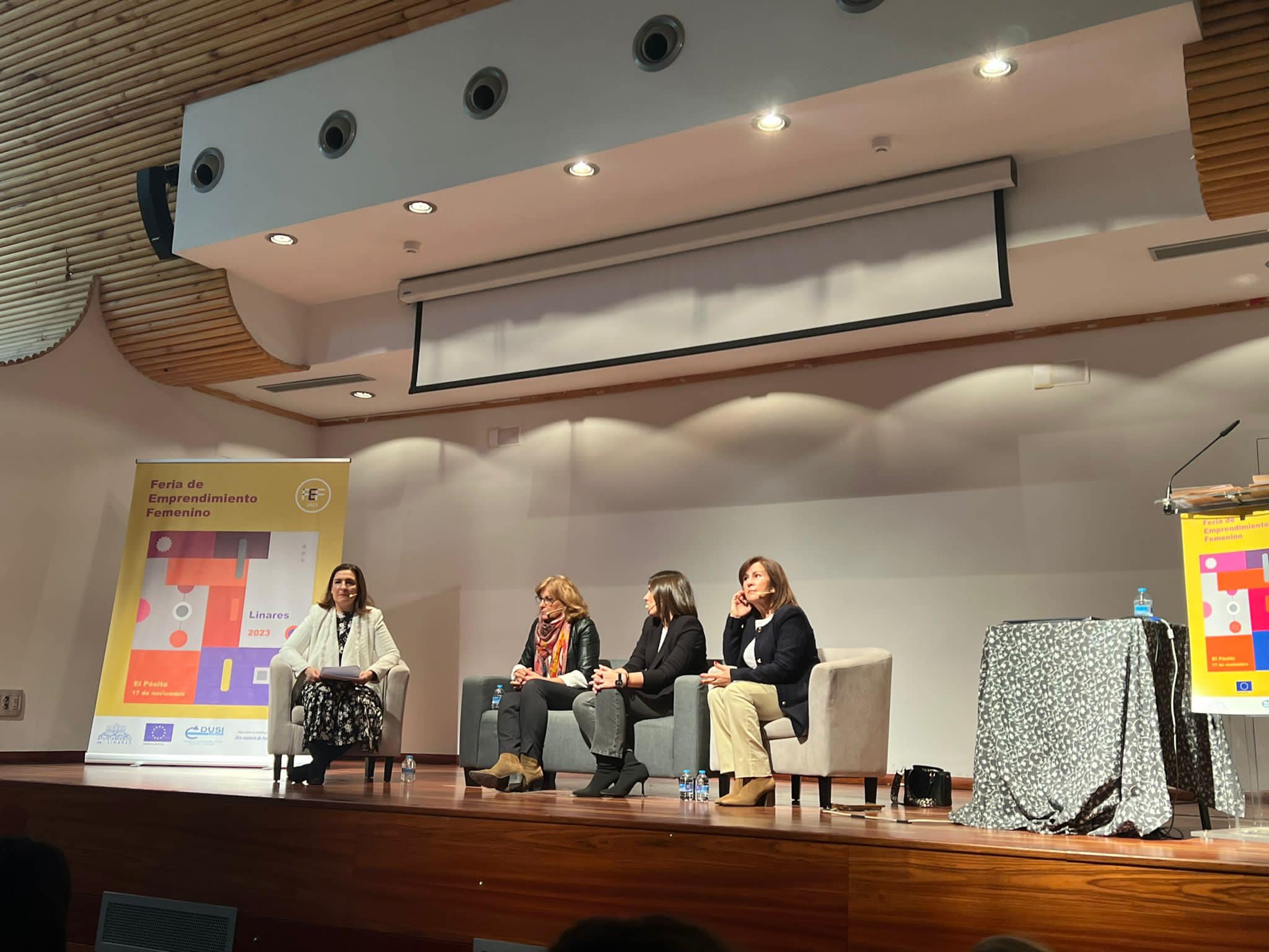 En la mañana del día 17 de noviembre de 2023 la Asociación de Jóvenes Empresarios de Jaén, AJE, ha celebrado en Linares la Feria de Emprendimiento Femenino. En el marco de esta feria, la directora de la Cátedra Ávolo de Empresa Familiar de la Universidad de Jaén, Rocío Martínez, ha tenido el placer y el honor de moderar una mesa redonda de mujeres, empresas y talento. En ella han participado Marife Bruque, de Aceites Finca San José; Noelia Justicia, de Evolutio Cloud Enabler y Maribel Bonachela Molina, de Riska Licores.